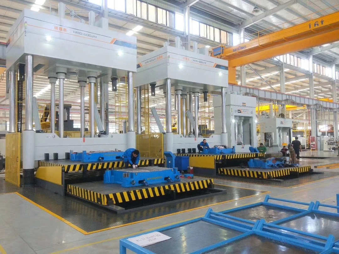 在6000T超大型壓鑄機(jī)面世前,合模機(jī)最大噸位為600T(合模力),適用于5000T以下壓鑄島。因此,傳統(tǒng)的合模機(jī)已無法滿足一體化超大型壓鑄模具的配模要求,寧波順興開浩精工機(jī)械有限公司因應(yīng)市場(chǎng)需求,于2020年著手研發(fā)超大型配模設(shè)備,先后開發(fā)出合模力800T、1000T超大型合模機(jī),工作臺(tái)面為4200mm×3500mm,5000mm×4200mm。應(yīng)用于6000T、9000T以上超大型壓鑄機(jī)的模具。同時(shí),因客戶要求,目前正在進(jìn)一步研發(fā)更大工作臺(tái)面的合模機(jī)。