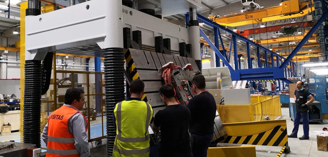 一體化壓鑄成型技術(shù)應(yīng)用與推廣乃大勢(shì)所趨。越來越多整車及汽車零部件廠商正在研制一體化壓鑄零部件,隨之而來的超大型壓鑄機(jī)的模具越來越大(重),有些模具重量甚至達(dá)到200T。在壓鑄模具開發(fā)和制造過程中,需要使用一種設(shè)備,即模具研配試驗(yàn)壓力機(jī)(合模機(jī)),用于模具的研配和校正。